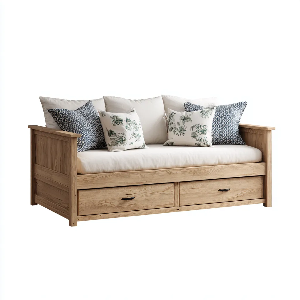 Schlafsofa - Holz-Stoff - 214x97x79 cm - Eiche natur - klassischer Stil